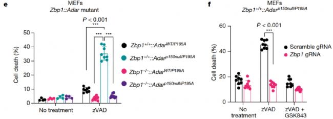 證明Adar P195A/p150null細(xì)胞對(duì)ZBP1依賴性壞死性凋亡敏感。