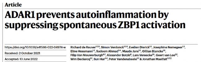 [11]de Reuver R, Verdonck S, Dierick E, et al. ADAR1 prevents autoinflammation by suppressing spontaneous ZBP1 activation[J]. Nature, 2022, 607(7920): 784–789.
