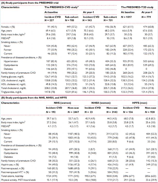表2 PREDIMED研究和NHS/ HPFS研究中MEDAS與CVD風(fēng)險(xiǎn)代謝特征的關(guān)系