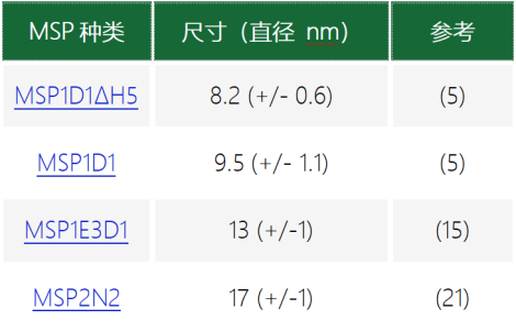 表 2:MSP 蛋白質(zhì)及相關(guān)納米盤(pán)尺寸概述
