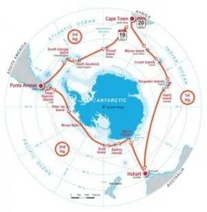 探險隊此行的主要目的是環(huán)航南極洲,沿著環(huán)航路線進(jìn)行海洋觀測和氣象觀測,同時對亞南極洲和南極諸島進(jìn)行陸地觀測。探險隊從開普敦(Cape Town)出發(fā),將于92天后返航。