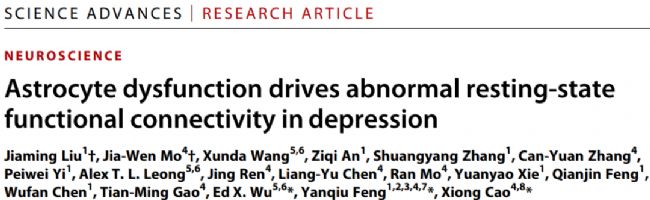 星形膠質(zhì)細(xì)胞是哺乳動物大腦中最豐富的膠質(zhì)細(xì)胞類型,與抑郁癥緊密相關(guān)。星形膠質(zhì)細(xì)胞調(diào)節(jié)突觸傳遞和可塑性,并調(diào)節(jié)不同腦區(qū)神經(jīng)元的相互作用。研究發(fā)現(xiàn)星形膠質(zhì)細(xì)胞內(nèi)的鈣活性與全腦血氧水平依賴(BOLD)的MRI信號波動有關(guān),但是星形膠質(zhì)細(xì)胞是如何調(diào)節(jié)rsfMRI功能連接,及其在抑郁癥中的作用目前尚不清楚。