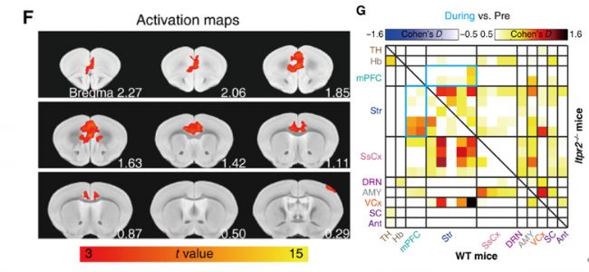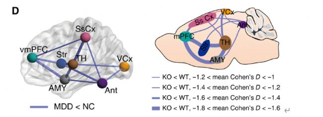 通過對1080名MDD患者和931名健康對照的rsfMRI數(shù)據(jù)集進(jìn)行分析,發(fā)現(xiàn)MDD患者與Itpr2-/-小鼠具有高度一致的rsFC變化,尤其是與mPFC相關(guān)的網(wǎng)絡(luò)。
