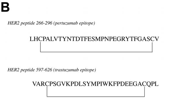圖 6 B-Vaxx多肽根據(jù)HER2/帕妥株單抗和HER2/曲妥珠單抗復(fù)合物工程化模擬構(gòu)象表位