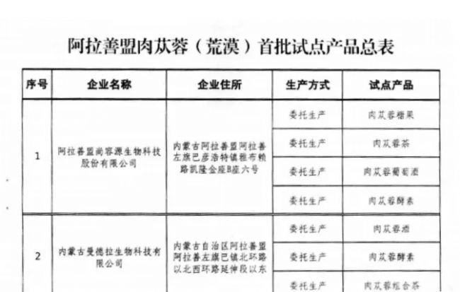而在這些試點(diǎn)中,內(nèi)蒙古阿拉善盟是唯一一個(gè)公布了試點(diǎn)產(chǎn)品及企業(yè)的,這個(gè)表格如下: