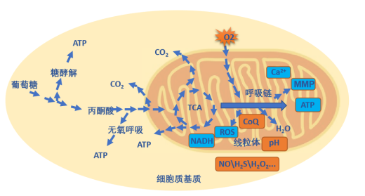電化學(xué)實時動態(tài)檢測模塊:pO2(高分辨率極譜氧電極傳感器,耗氧率檢測分辨率為±1 pmol O₂∙s-¹∙mL-¹)、pH、H2O2、TPP+(測量線粒體膜電位)、H2S、NO、質(zhì)體醌;熒光實時動態(tài)檢測模塊:MMP(測量線粒體膜電位)、ATP、Ca2+、ROS、NADH;