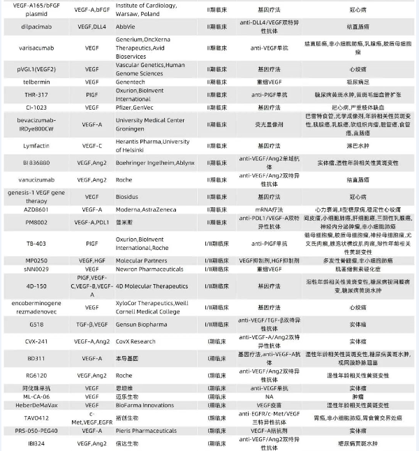 目前,VEGF靶向藥的開發(fā)多集中于腫瘤和眼科疾病兩大領(lǐng)域。