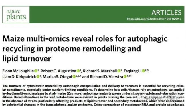 今天小趣通過Nature Plants上的Maize multi-omics reveal roles for autophagic recycling in proteome remodelling and lipid turnover一文給大家詳細解讀如何運用多組學聯(lián)合分析闡述玉米自噬的影響。