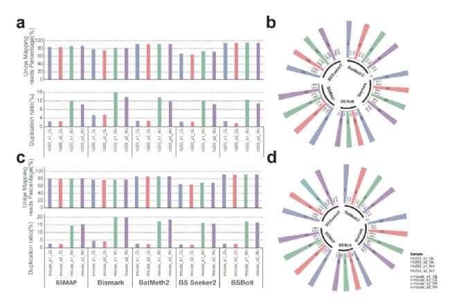 近日,真邁生物在BMC bioinformatics上發(fā)表了題為“Systematic and benchmarking studies of pipelines for mammal WGBS data in the novel NGS platform”的研究成果。該研究在真邁生物GenoLab M高通量測序平臺和Illumina的NovaSeq 6000平臺進行全基因組甲基化測序,比較了兩個平臺對小鼠肝臟細胞系NCTC1469和人胚胎腎細胞系293(HEK293)的全基因組甲基化圖譜的差異與影響,并探究了GenoLab M平臺對于目前5款常用甲基化分析流程(BSMAP,Bismark,BS Seeker2,BatMeth2,BSBolt)的偏好性。
