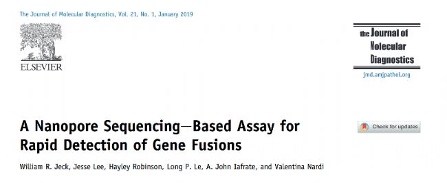 [2] Jeck WR, Lee J, Robinson H, et al. A Nanopore Sequencing-Based Assay for Rapid Detection of Gene Fusions. J Mol Diagn. 2019 Jan;21(1):58-69.