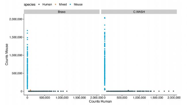 圖5. 使用C.WASH和BRAVO清洗后相應(yīng)基因組的讀取數(shù)