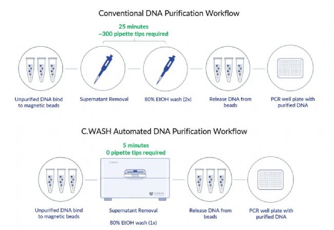 圖6. 手工清洗和C.WASH清洗DNA純化中的磁珠工作流程示意圖