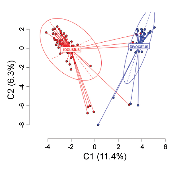 降維分析嘗試找到最能反映數(shù)據(jù)點(diǎn)真實(shí)分布情況的兩個(gè)維度,以方便對(duì)數(shù)據(jù)進(jìn)行直觀把握。一般采用共同覆蓋的5×以上位點(diǎn)進(jìn)行分析: