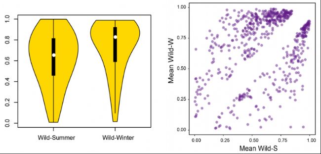 - 甲基化水平分布的組間比較,能夠更進(jìn)一步了解組間甲基化水平的變化。