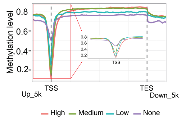 - 平均甲基化水平能反應(yīng)樣本整體的甲基化水平。