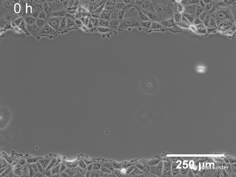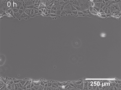 通過(guò)活細(xì)胞成像或在不同時(shí)間點(diǎn)拍照來(lái)監(jiān)測(cè)細(xì)胞遷移到間隙的過(guò)程。