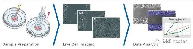 傷口愈合測(cè)定/遷移測(cè)定的最具特征的讀數(shù)是細(xì)胞覆蓋區(qū)域(間隙閉合)隨時(shí)間的變化。進(jìn)行傷口愈合和遷移試驗(yàn)是一個(gè)簡(jiǎn)單的過(guò)程: