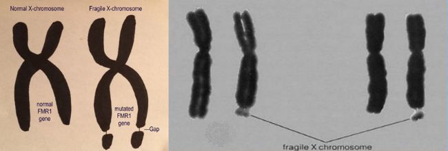 圖1. 脆性X染色體的示意圖和顯微鏡照片