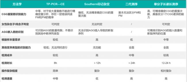 表3. 脆性X染色體綜合征FRM1基因檢測方法比較