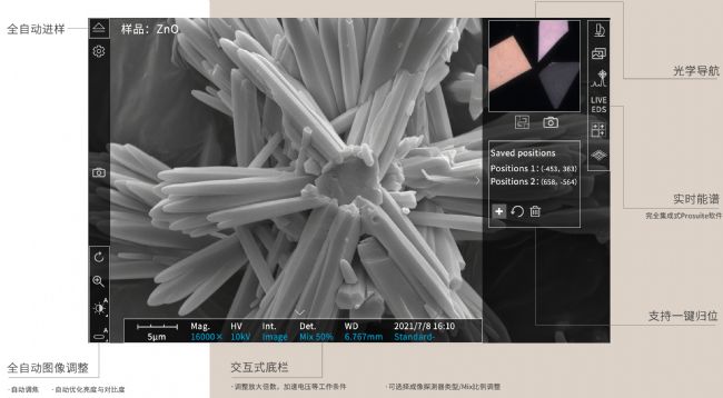 提高 SEM 的可操作性是研發(fā)桌面式 SEM 的動機之一。簡單友好的用戶界面使得用戶可以快速完成培訓,從而降低了掃描電鏡的操作技巧要求。桌面式 SEM 操作很簡單,幾乎沒有經(jīng)驗的用戶也可以通過短時間的學習來獲取高質(zhì)量的圖像。