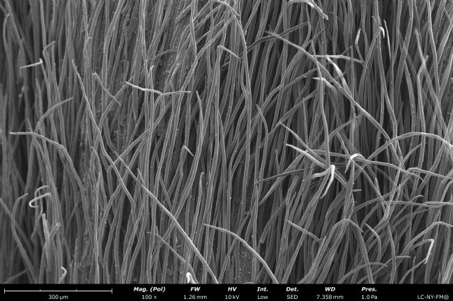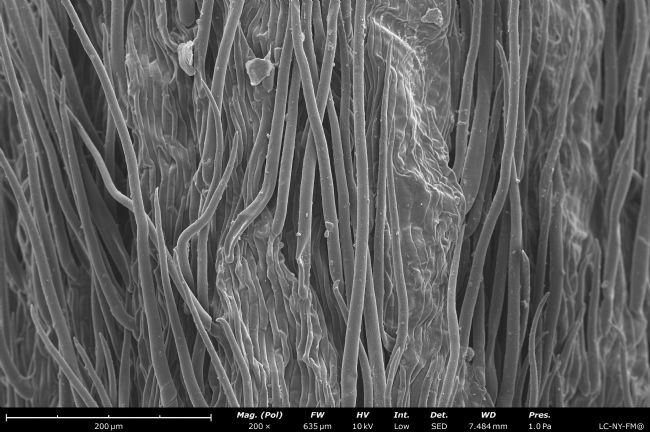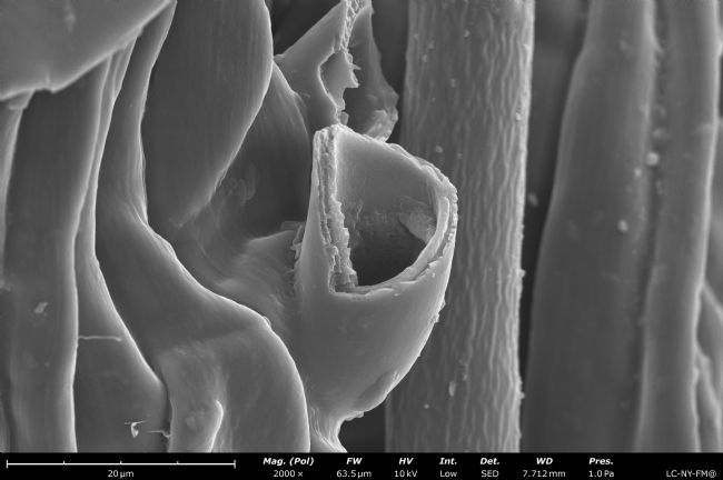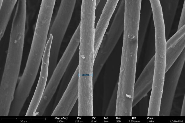 我們使用掃描電鏡觀察可以發(fā)現(xiàn)茶毫與霉變完全不同,茶毫呈現(xiàn)規(guī)則的細(xì)絲狀,直徑約為 10 微米(相當(dāng)于頭發(fā)絲的十分之一),長(zhǎng)度可達(dá)數(shù)百微米,且呈現(xiàn)空心的狀態(tài)。