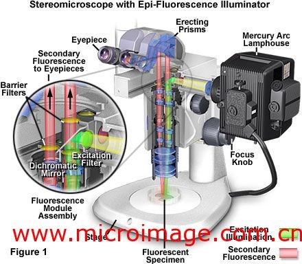 【本文的標(biāo)題和網(wǎng)址】體視鏡落射熒光照明圖解;http://www.mshot.com/article/497.html