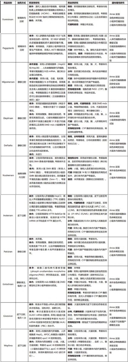 表2 部分已上市小核酸藥物研究?jī)?nèi)容匯總