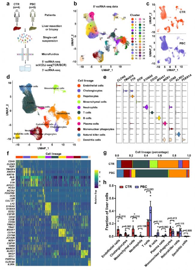 1. PBC肝臟單細(xì)胞轉(zhuǎn)錄組圖譜