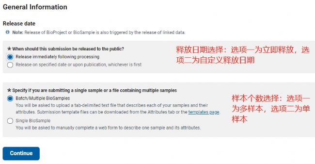 General Information 界面,選擇數(shù)據(jù)釋放日期和樣本個(gè)數(shù),點(diǎn)擊 Continue;