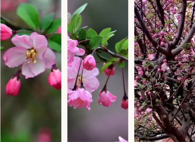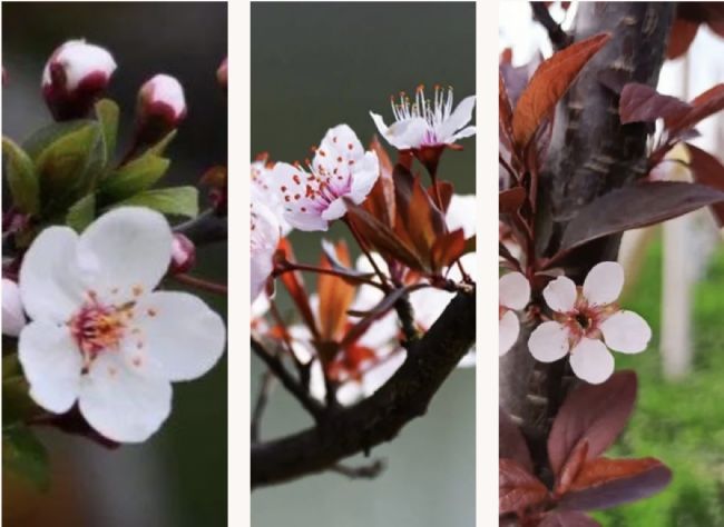 紫葉李是我國園林綠化常見的觀賞樹木,小區(qū)里、街道邊常常出現(xiàn)它們的身影,花期花型與櫻花十分相似,極易指“李”為櫻。不過目前處于同一花期,花形類似的還有海棠,一樹一樹的粉色海棠迎風(fēng)綻放,爭與春光共旖旎,乍一看還以為是櫻花。為了避免錯(cuò)認(rèn)賞“櫻”的尷尬情況,我們今天就詳細(xì)講一講這三種常見觀賞植物的區(qū)別。