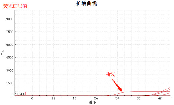 而正常情況如下圖,縱坐標(biāo)的范圍是可以隨著曲線最大熒光信號(hào)值而變化的,并可獲得一條漂亮的S曲線。