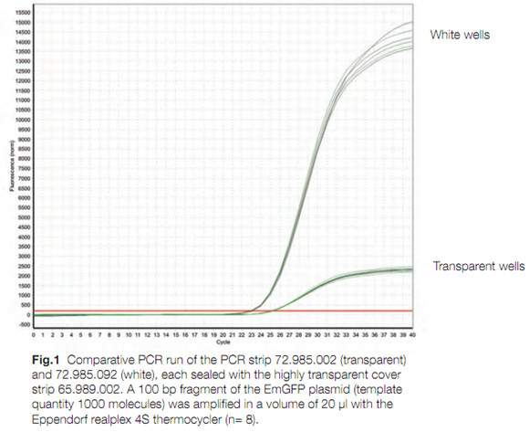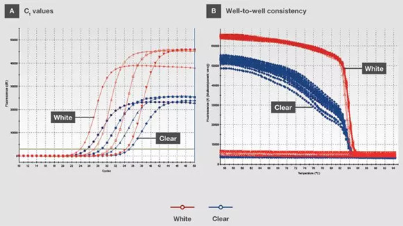 在設(shè)置實(shí)時(shí)PCR或qPCR的反應(yīng)時(shí),與透明耗材相比,我們更推薦使用白色耗材,以實(shí)現(xiàn)靈敏和準(zhǔn)確的熒光檢測(cè)。