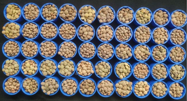 扁豆(Lens culinaris Medik.)的種子大小和形狀是重要的品質(zhì)特征,因其影響碾磨的谷物產(chǎn)量、烹飪時間和谷物的市場品級。 通過將L830(20.9g/1000粒種子)與L4602(42.13g/1000粒)雜交獲得的RIL(F5:6)群體中的種子大小進(jìn)行連鎖分析,L4602由188個品系(15.0至40.5g/1000粒種子)組成。 使用394個SSR進(jìn)行的親本多態(tài)性調(diào)查確定了31個多態(tài)性引物,用于群體分離分析(BSA)。 標(biāo)記PBALC449僅分化親本和小種子大小的群體,而大種子群體或構(gòu)成大種子群體的單個植物不能分化。 單株分析僅鑒定了93個小種子RIL中的6個重組體和13個雜合子(<24.0g/1000種子)。 這清楚地表明,小種子大小性狀受到PBLAC449附近基因座的強(qiáng)烈調(diào)節(jié); 然而,大種子大小性狀似乎由多個基因座控制。 對來自PBLAC449標(biāo)記的PCR擴(kuò)增產(chǎn)物(來自L4602的149bp和來自L830的131bp)進(jìn)行克隆、測序,并使用扁豆參考基因組進(jìn)行BLAST搜索,發(fā)現(xiàn)從03號染色體擴(kuò)增。 隨后,搜索了3號染色體上的鄰近區(qū)域,并鑒定了一些候選基因,如泛素羧基末端水解酶、E3泛素連接酶、TIFY樣蛋白和己糖基轉(zhuǎn)移酶,它們在種子大小測定中起作用。 在另一個因種子大小不同而不同的RIL作圖群體中進(jìn)行的驗(yàn)證研究表明,當(dāng)使用全基因組重排序(WGRS)方法進(jìn)行研究時,這些基因中存在大量SNP和InDel。 纖維素、木質(zhì)素和木糖含量等生化參數(shù)在成熟時在親本和極端RIL之間沒有顯著差異。 當(dāng)使用VideometerLab 4.0測量時,不同的種子形態(tài)特征,如面積、長度、寬度、緊密度、體積、周長等,顯示出親本和RIL的顯著差異。 這一結(jié)果最終有助于更好地理解像扁豆這樣的基因探索較少的作物的種子大小性狀的調(diào)控區(qū)域。