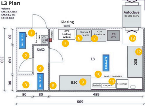 需要考慮到房間的類型:通常幾個(gè)消毒機(jī)的組合是強(qiáng)制性的,以有效地凈化實(shí)驗(yàn)室:Phileas75 用于大空間 + Phileas25 用于小空間。