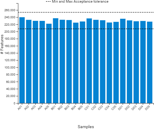 在DIA數(shù)據(jù)采集中,可能需要更嚴(yán)格的QC來彌補由于MS2譜圖復(fù)雜性可能造成的低質(zhì)量結(jié)果。因此,PEAKS Online提供了一個定制的QC過濾器,可以選擇多個QC指標(biāo)并刪除未通過質(zhì)控或者低質(zhì)量的采集。所有未通過用戶設(shè)置閾值的指標(biāo)被分類并匯總到圖表中。因此,用戶可以快速確定在特定的采集過程中哪些指標(biāo)質(zhì)控不通過,并決定后續(xù)解決方案。