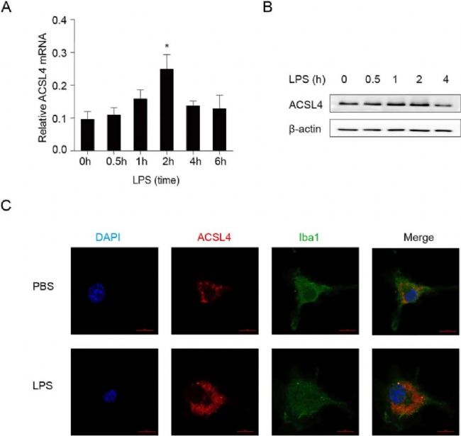 1. LPS誘導(dǎo)后小膠質(zhì)細(xì)胞中ACSL4的表達(dá)增加