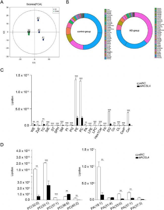 4. 脂質(zhì)組學(xué)分析:敲低ACSL4可改變LPS誘導(dǎo)后細(xì)胞的脂質(zhì)組成