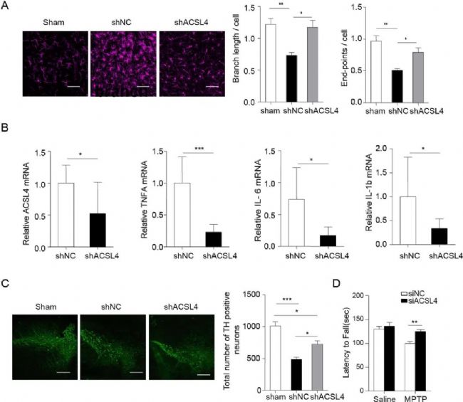 步驟5:體內(nèi)體外實(shí)驗(yàn):ACSL4敲低降低體外神經(jīng)元?dú)芰,減輕體內(nèi)LPS和MPTP誘導(dǎo)的神經(jīng)炎癥。