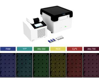 法國Stilla Technologies公司naica®六通道數(shù)字PCR系統(tǒng),源于Crystal微滴芯片式數(shù)字PCR技術(shù),自動(dòng)化微滴生成和擴(kuò)增,每個(gè)樣本孔可實(shí)現(xiàn)6熒光通道的檢測(cè),智能化識(shí)別微滴并進(jìn)行質(zhì)控,3小時(shí)內(nèi)即可獲得至少6個(gè)靶標(biāo)基因的絕對(duì)拷貝數(shù)濃度。