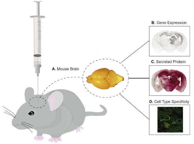 目前,病毒載體在實驗室神經(jīng)科學(xué)活體研究中,通常是應(yīng)用病毒直接注射的方式注射到目標(biāo)腦區(qū),然后再進行后續(xù)研究。病毒表達的鑒定包括:鑒定基因表達、鑒定蛋白表達和鑒定神經(jīng)元亞型,具體參考下圖所示。