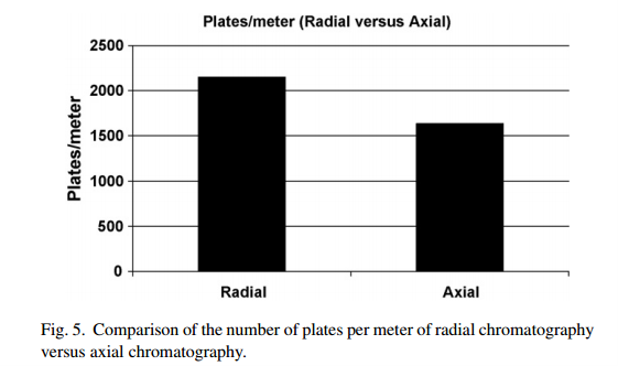 圖中可見,徑向工藝裝柱塔板數(shù)顯著高于軸向柱,為更好的分離純化效果提供了有利的支持。
