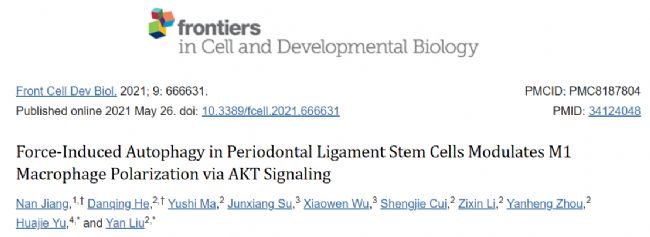 參考文獻:Jiang N, He D, Ma Y, Su J, Wu X, Cui S, Li Z, Zhou Y, Yu H, Liu Y. Force-Induced Autophagy in Periodontal Ligament Stem Cells Modulates M1 Macrophage Polarization via AKT Signaling. Front Cell Dev Biol. 2021 May 26;9:666631. doi: 10.3389/fcell.2021.666631. PMID: 34124048; PMCID: PMC8187804.