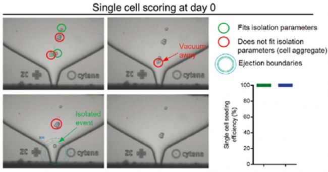 使用Cytena單細(xì)胞打印機(jī)可直接捕獲噴嘴圖像作為嚴(yán)格單細(xì)胞分選證據(jù)。流式分選作為對照組。