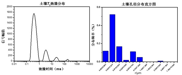 土壤T2分布圖以及土壤的孔徑分布直方圖