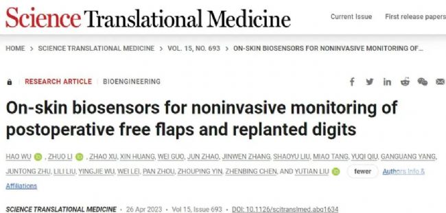 本研究提出的GCD-PDMS可以作為表皮電子設(shè)備與人體皮膚之間界面設(shè)計的通用策略。此外,動物和臨床研究表明,本研究提出的生物傳感器可以準(zhǔn)確地識別游離皮瓣和再植斷指的血運狀況,具有無創(chuàng)、無線、連續(xù)、定量和易于使用的優(yōu)點,在推動生物傳感系統(tǒng)面向高性能、小型化、便攜式方向發(fā)展具有重要意義。