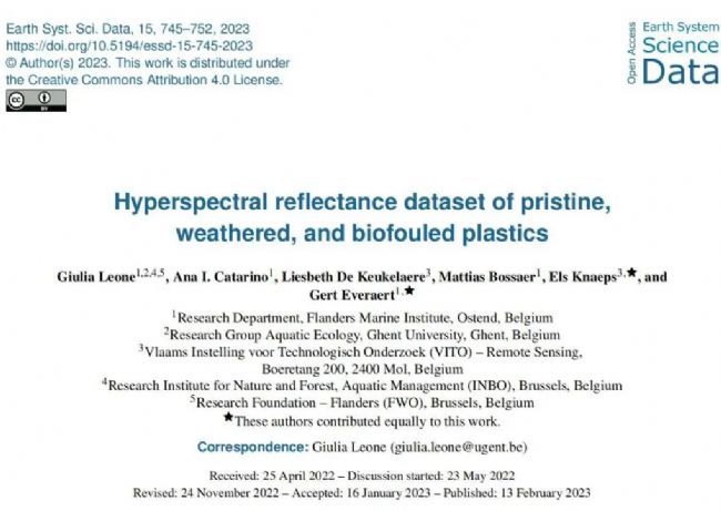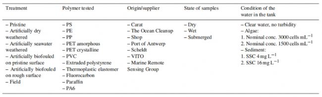 基于此,在本研究中,由比利時(shí)奧斯坦德法蘭德斯海洋研究所、比利時(shí)根特大學(xué)水生生態(tài)學(xué)研究小組、佛蘭德技術(shù)研究所(VITO)、比利時(shí)布魯塞爾自然與森林水產(chǎn)管理研究所、研究基金會(huì)-佛蘭德斯(FWO),比利時(shí)布魯塞爾組成的一組研究團(tuán)隊(duì)收集了安特衛(wèi)普港碼頭和特姆斯橋附近謝爾特河自然條件下的原始、風(fēng)化和生物污染的塑料制品和塑料碎片樣品,同時(shí)選擇純?cè)妓芰暇酆衔,進(jìn)行塑料樣品人工風(fēng)化模擬、生物污染模擬,利用ASD FieldSpec 4地物光譜儀規(guī)范測(cè)量由不同聚合物組成的塑料樣品的干燥光譜反射率、潮濕和水下環(huán)境中(人工模擬環(huán)境)的光譜反射率,提出了一個(gè)利用ASD FieldSpec 4地物光譜儀獲得的宏觀塑性樣品的高光譜反射率數(shù)據(jù)集。