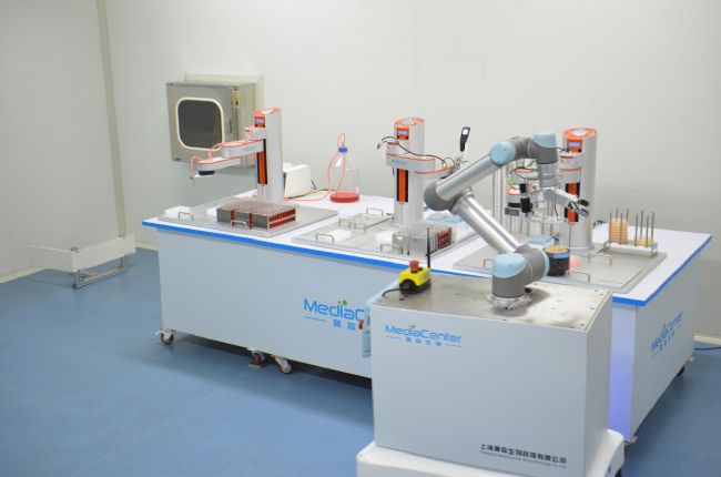 這塊我們?cè)O(shè)計(jì)了相應(yīng)的裝備,包括相應(yīng)的軟件實(shí)現(xiàn)這個(gè)數(shù)據(jù)的集成管理,有的已經(jīng)開始銷售了,有的還處于方案階段。比如我們?nèi)又,通過機(jī)器人送到檢測(cè)室。夜里面取完樣以后人不在,便有移動(dòng)機(jī)器人送到檢測(cè)室,檢測(cè)室另外的機(jī)器人去實(shí)現(xiàn)樣品的這個(gè)檢測(cè)。包括離心、測(cè)OD值、測(cè)生化指標(biāo),都是可以完全實(shí)現(xiàn)無人化的這個(gè)模式,包括整合第三方的這種這個(gè)檢測(cè)儀器。