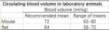 小鼠的循環(huán)血量大約是72ml/kg。以25g的成年小鼠為例,它的循環(huán)血量大約為1.8ml。大鼠的循環(huán)血量大約是64ml/kg。以250g的成年大鼠為例,它的循環(huán)血量大約為16ml。