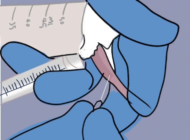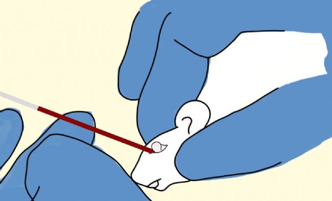 · 在小鼠嘴角沿線與外眼角線橡膠處找到頜下靜脈的大致位置,會(huì)發(fā)現(xiàn)一個(gè)無(wú)毛的小點(diǎn),有點(diǎn)像酒窩。基本位于嘴角遠(yuǎn)端稍低于下巴線。