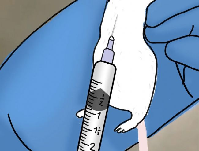 3、使小鼠側(cè)臥,垂直于胸壁插入針頭。